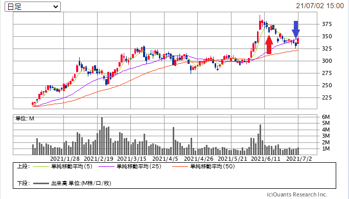 こいつは決済まで出ちゃってますね。358.3円で売って334.0円で買い戻ししています。約1万円のプラスです。すごいもう…十分です。チャートも出しましょう。